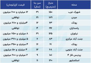 بررسی فایلهای عرضه شده در این سایت خرید و فروش مسکن نشان میدهد، یک خانه ۱۵۰ متری در شهرک غرب و در منطقه ۲، با ۳۱ سال عمر بنا، ۱۲ میلیارد و ۶۰۰ میلیون تومان به فروش میرسد.