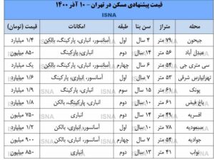 بررسی‌ها نشان می‌دهد آذر و دی ماه سال گذشته در مناطقی از تهران امکان خرید آپارتمان‌هایی با سطح قیمتی ۸۰۰ تا ۹۰۰ میلیون تومان وجود داشت اما در حال حاضر به سختی می‌توان فایل‌هایی با قیمت کمتر از یک میلیارد تومان پیدا کرد.